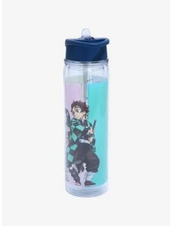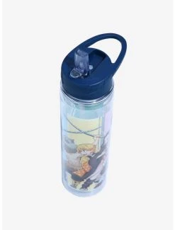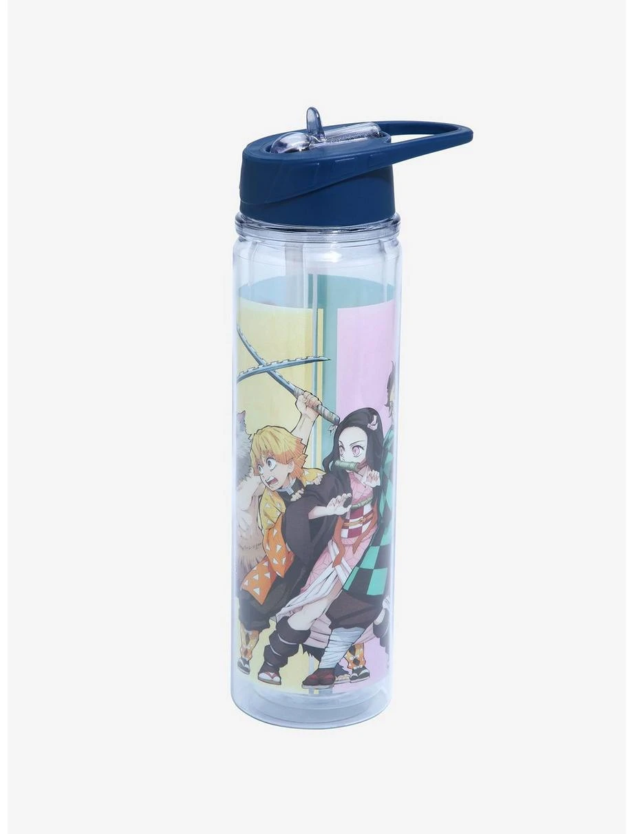 Training arc got you winded? Hydrate and refresh with your favorite beverage and this Demon Slayer: Kimetsu no Yaiba water bottle! Featuring a group portrait graphic of Inosuke, Zenitsu, Nezuko, and Tanjiro striking a pose against a colorful pastel panel background, you can train with your favorite members of the Demon Slayer Corps whenever you take this water bottle along with you. Also features a screw top lid with a flip-up straw and carrying handle.