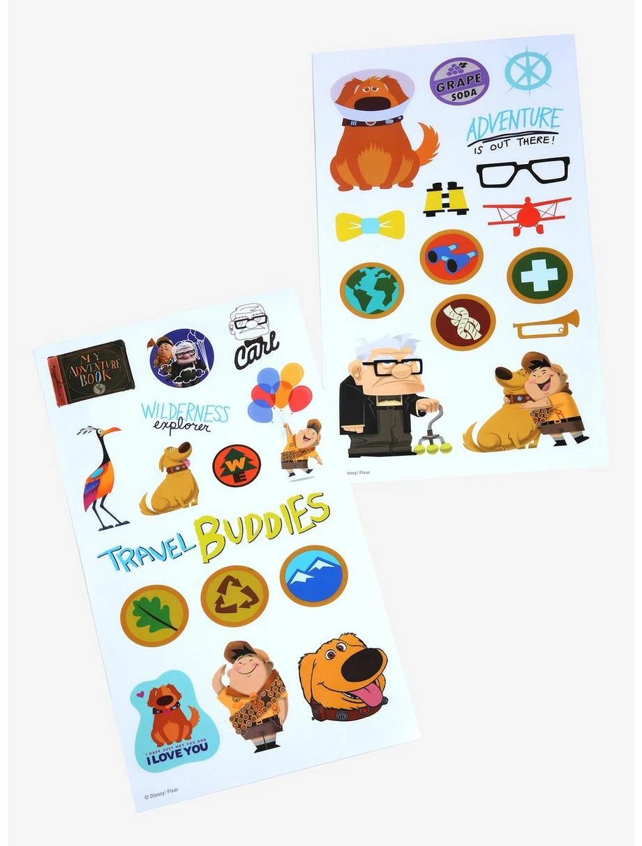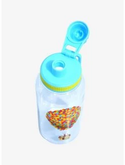 Stay hydrated on all of your adventures to Paradise Falls and beyond with this Disney•Pixar water bottle! Featuring a design of Carl and Ellie’s house floating away on balloons, this Up water bottle comes with two sticker sheets of Russell, Dug, Wilderness Explorer badges, and more icons and characters from the beloved movie so you can decorate accordingly for your travels. Also features a screw-off sport cap lid and handle.