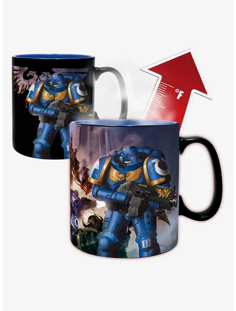 Officially licensed Warhammer 40K merchandise. Bundle includes (1) Ultramarines Glass and (1) Ultramarine and Black Legion Magic Mug. Made out of high quality materials. Glass is dishwasher safe and holds 14 oz. Mug is hand wash only and holds 16 oz. Mug is not microwave safe.