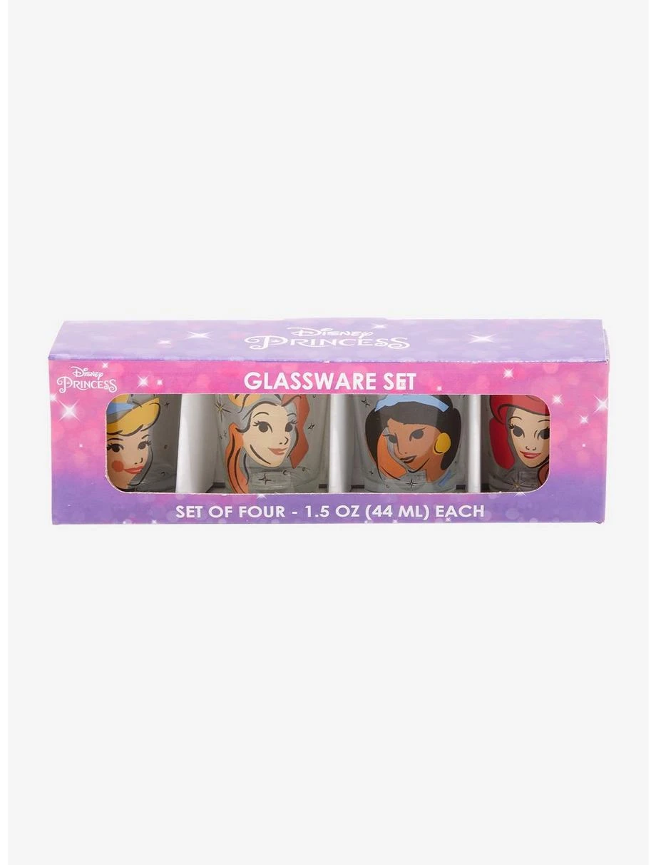 Bring a touch of regal flair to your drinkware collection with this Disney Princess mini glass set! Featuring minimalist pop art portraits of Cinderella, Belle, Ariel, and Jasmine, this 4-piece glass set is perfect for sharing a toast at your next royal gathering.