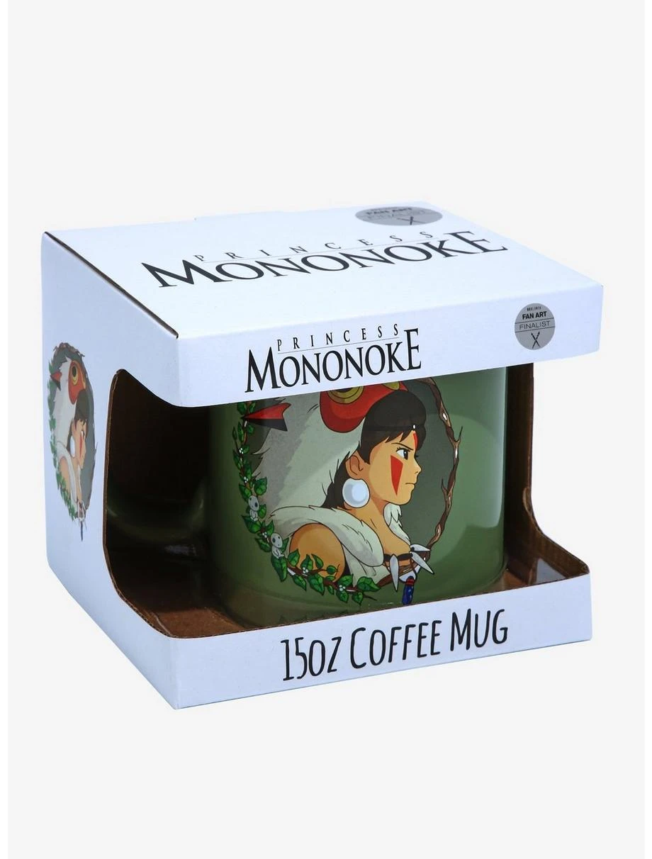 Get ready for a day of protecting the forest with a little help from San and this Princess Mononoke-inspired mug! Featuring Fan Art Finalist artwork of San surrounded by a botanical-themed circle frame, this mug is sure to bring a bit of Studio Ghibli charm into your drinkware collection.Â
